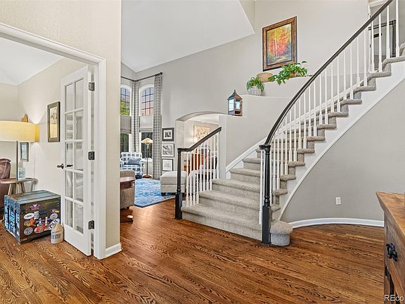 This Beautifully Updated 5 Bedroom, 5 Bath Home with 4,188 Sq. Ft. and Fully Finished Basement in the Highly Sought After Hidden Pointe Neighborhood of Castle Pines North! Main Floor Features Include: Grand Entry with Curved Staircase, Hardwood Floors, Completely Updated Gourmet Kitchen with Quartz Countertops, Center Island, Countertop Seating for 4, Breakfast Nook, 42" Ivory Cabinets, French Door Refrigerator, 5-Burner Gas Cooktop, Hood, Convection/ Microwave Oven and Dishwasher! The Spacious Family Room with Gas Fireplace and Sprawling 18' Ceilings, Formal Dining Room or Second Office, Elegant Formal Living Room, Private Main Floor Study with New Double Pane Windows and Glass French Doors, 3/4 Bathroom and Mud/Laundry Room with Upper and Lower Cabinets. 3 Car Side by Side Garage with Epoxy Floors, Suspended Storage and Exterior Access Door. The Second Floor Features Include: Private, Primary Suite with Vaulted Ceilings and New Double Pane Windows, Updated 5-Piece Primary Bathroom with Stand Alone Tub, Oversized Shower with Bench and Seamless Glass. Large Vanity with Dual Sinks and Walk-In Closet. Guest Bedroom with Full Ensuite and Two Secondary with a shared, Full Jack-n-Jill Bathroom. The Fully Finished, 1,056 Square Foot Basement Features: Recreation Room with Wet Bar, Bedroom, 3/4 Bathroom, Exercise Area, Craft Room/Storage Room and 20x20 Crawl Space. The Professionally Landscaped, Fully Fenced Backyard Features a Massive 900 Sq. Ft. Flagstone Patio, Water Feature, Lightings, Mature Trees, Grasses and Plantings! Just Steps Away from the Popular Coyote Ridge Park and Trails. Just Minutes to The Ridge at Castle Pines Golf Club, 5 Minutes to Timber Ridge Elementary, Rocky Heights Middle School and Rock Canyon High School! 8 Minutes to King Soopers, Restaurants and I-25! This Home is Absolutely Stunning, Meticulously Maintained and Move-In Ready!