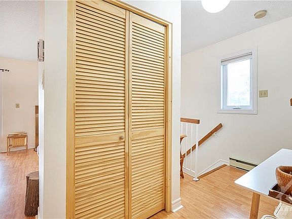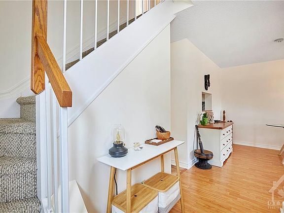 Spacious, bright, & freshly painted 2 bedroom, 2 bath upper end unit boutique stacked condo. Main living level features open living/dining room with wood-burning fireplace, access to front covered balcony, & office/hobby nook. The kitchen has plenty of cupboards, stainless steel appliances, & pass through to eating area. Powder room & good-sized laundry room also on this level. Upper floor features 2 very good sized bedrooms, including a walk-in closet in the primary bedroom & cheater 5 piece ensuite. The unit has newer windows, & it is worth noting there is a window in every room, making the condo exceptionally light & bright! Ideally located across from a Community Center & a short walk to Rideau River, bike paths & Strathcona Park. Less than a 10 minute drive to downtown. 1 underground parking space & storage locker included. Visitor parking available. Washer & dryer being replaced prior to closing. Vanier & South-Overbrook part of City Neighbourhood Revitalization Strategy.