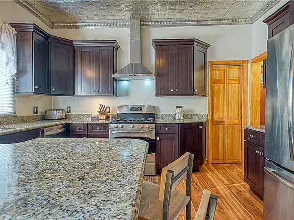 This GLORIOUS POWERHOUSE is nestled on a PRIVATE DEAD END STREET accompanied by an EXCLUSIVE PARKING LOT for Darsie residents! Home is in a FANTASTIC LOCATION close to all of amenities Bloomfield has to offer! THE KITCHEN IS A MUST SEE offering granite countertops, newer stainless-steel appliances with custom peninsula chairs for casual or formal eats with easy access to walk out patio! MULTIPLE FUNCTIONAL UPGRADES inside and out! This city home boasts a SPACIOUS FENCED YARD ideal for entertaining family/friends! NEW ROOF, downspouts, box gutters, railing and gate, along with waterproof paint along basement exterior wall. Interior upgrades include 2nd FLOOR BATHROOM RENOVATION (plumbing, flooring, toilet, and vanity) and NEW FLOORING in basement. FRESH PAINT in living room, master bedroom, and basement office Basement allows walk out access and is equipped with laundry, additional flex space/workout area, HOME OFFICE, and half bath!