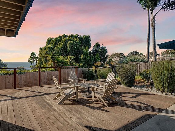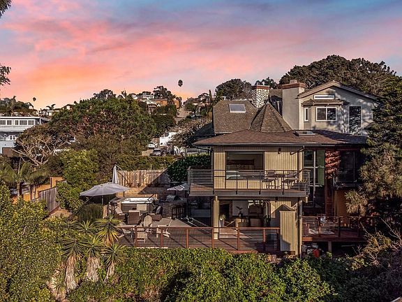 Nestled in the trees west of the 5 in the highly sought-after Del Mar Village Location. This stunning coastal retreat offers breathtaking ocean views from nearly every room and is Perfectly situated within walking distance to the beach. Relax and take in spectacular sunsets over the water from multiple decks or the spacious living room with fireplace and La Cantina style doors. All opens to the outdoor space with Firepit, Spa and a huge BBQ Bar area that's perfect for entertaining or simply savoring the serene beauty of your surroundings. This home blends classic charm with modern upgrades done in 2019. Elegant floor to ceiling glass foyer lets in tons of light. New bathrooms, hardwood flooring, AC units, and plumbing throughout. The updated kitchen features a big island, sleek stainless steel appliances, offering both style and functionality. A versatile bonus room can serve as a cozy den, office or a gym to meet your needs. Don't miss the opportunity to live in one of the most desirable coastal communities in Southern California.