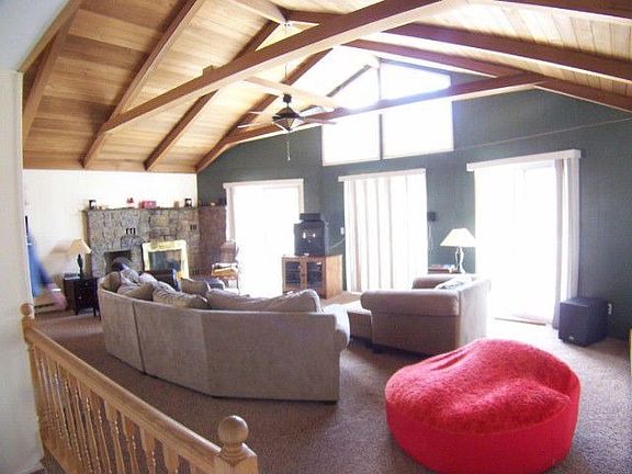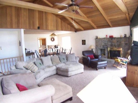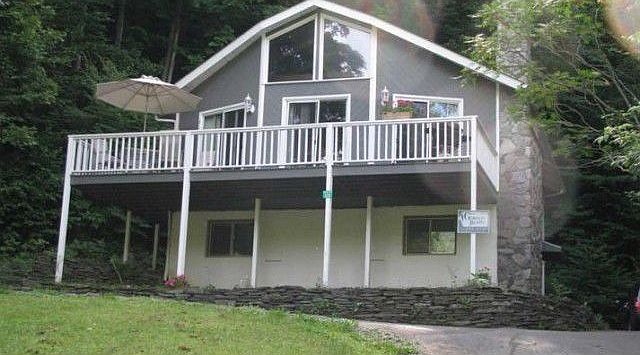 Deal of the Century! You can enjoy your summer in this friendly community with swimming pool and tennis court.Located on a beautifull road that ends with State land and hiking trails. Offers: gracious foyer w/french doors, bright, sunny living/dining room w/stone fireplace and cedar cathedral ceiling, laundry room, 4 beds/2 bath and fantastic views from the upper deck. Low maintenance. Move-in condition. (Internet 5675628-4/5/2012)