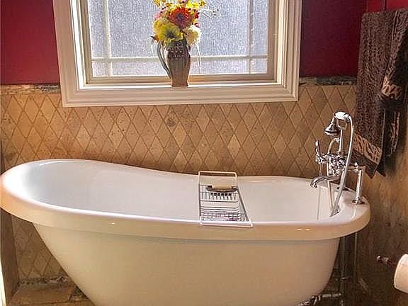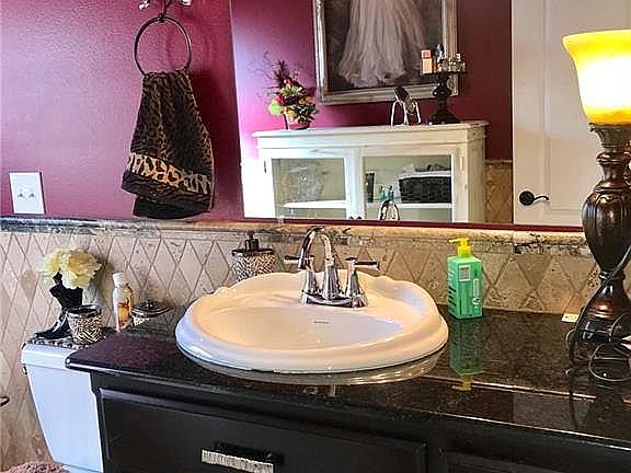 Gorgeous Home, In great Neighborhood, Unique stone floors , Hand scraped laminate wood flooring throughout, Beautiful arch ways, columns, Dark wood cabinets , claw foot tub for relaxation, Double pantry on each side of Laundry room .Cute chandeliers, Gas log fireplace Granite cabinet tops , Back yard complete with Hot tub, Hot tub has built in stereo system and LED’s, pergola with Jasmine, rock floor dog pen , raised garden beds , and a fantastic view from back yard , Landscaping on all sides of the house , Large Elephant ears adorn the back porch. Storage above garage in attic. About a foot of fiberglass insulation in attic, walls are spray cellulose insulation. Very energy efficient, a/c is in garage so you never hear it kick on or off. Rock walkway around to back of house.