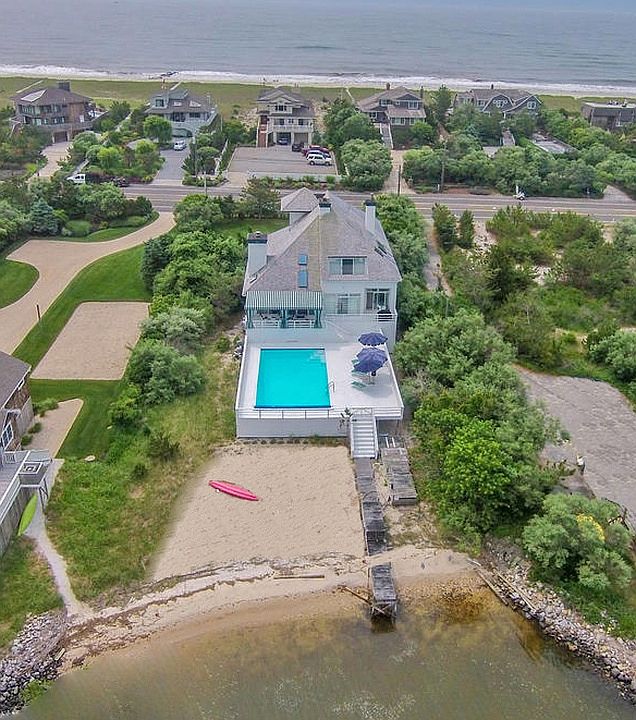 Spectacular 4200Sq. Ft. Bay Front Contemporary 5 Bdrms & 4 Baths. The Spacious 1st Flr Offers Large Eik, Dining Rm, Living Rm W/Cathedral Ceilings & Fplc, 2 Guest En-Suite Bdrms. The 2nd Floor Offers Large Master Suite W/Fplc. Come Enjoy Amazing Bay Views & Sunsets From Your Large Deck W/Heated In-Ground Pool & Private Boat Dock. Deeded Ocean Access Directly Across Street.