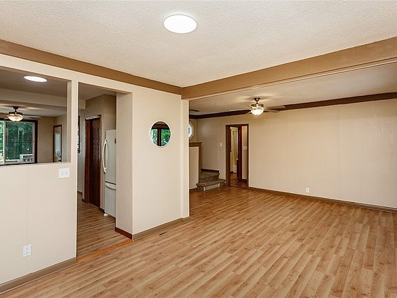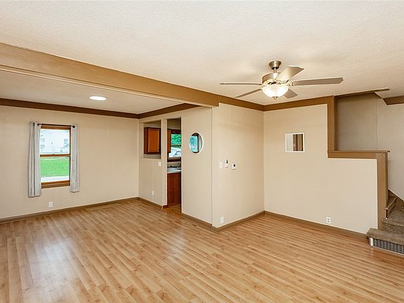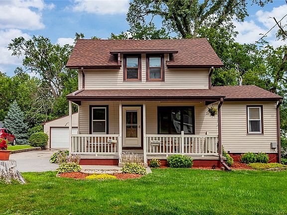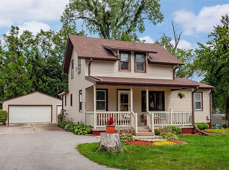 Wonderful curb appeal on this 1.5 story home with a nice, extra wide driveway and 3 separate garages that are all in great shape! First you have your 2 car detached main garage, a 24x18 shop w/ concrete floors and electric behind the garage and then another 12x18 shed. This home features a lot of updates including new vinyl siding, a new roof, new A/C, new furnace and newer hot water heater. The covered porch w/ swing welcomes you as you enter this home. Spacious living room w/ laminate flooring, a bedroom and full bathroom on the main level. Cute eat-in kitchen takes you out to the deck (partially covered) overlooking the beautiful, landscaped yard w/ mature trees. Upstairs you will find 2 bedrooms, a full bath and a bonus room. Downstairs is unfinished with a door that takes you out to the yard. ***This home is in an estate and will be sold “AS IS”.***
