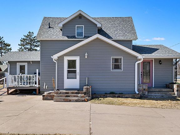 Move right in to this thoughtfully remodeled, updated, and well-kept 3 bed/3 bath home! This comfortable, sunlight-filled home offers all 1-level living with a primary ensuite on the main floor, laundry on the main floor, and 2 more bedrooms plus a full bath upstairs. Fresh updates include CUSTOM kitchen cabinets & counters with a special pantry closet, NEW flooring throughout main floor including slate in the entry and ½ bath (wow!), a newly enclosed, insulated & heated SUNROOM, & mostly Anderson windows. The exterior boasts NEW gutters & downspouts, NEW roof, NEW siding, NEW decking & ramp, and fresh paint on the oversize 3-car garage (that also has a heated workshop). The home has had updated electrical & plumbing. See supplements for a more extensive list. All this on a super-sized lot with a generous yard space, storage hut, gardens that are ready-to-go, and open vistas to the east & south. A great location on a quiet street, close to downtown amenities, & quick access to Hwy 35.