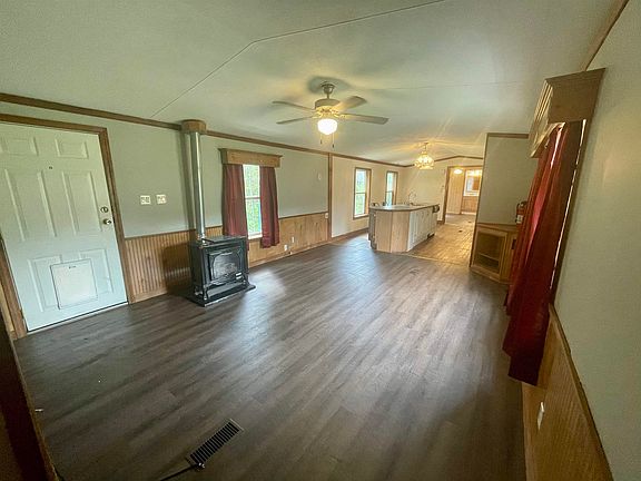 Single level home consisting of 3 bedrooms and 2 baths with 1068+/- square feet of living space. Open 1 acre lot in a convenient location. New flooring and paint in the bedrooms and living room in 2023. Concrete slab with tie downs and insulated skirting in place. Connected mudroom leads you inside where central a/c will keep you cool this summer. Open kitchen and living room allows you to enjoy meals. Detached shed for storage. Back deck is nice for relaxing, enjoy the sounds of the nearby brook that borders the property. This home is ready for you! 48hr noticed for all showings, evening showings starting at 4pm preferred.