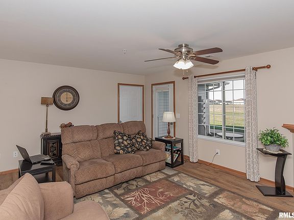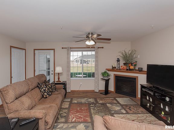 MAIN LEVEL condo, zero entrance with 2 bed, 2 bath and attached 2 car garage. So close to so much in Eldridge and the Quad Cities. You will love this well cared for, back corner unit that has been freshly painted and has newer carpets in bedrooms. Enjoy the open concept with a cozy gas fireplace or the 17x7 covered patio with a storage closet to the level back yard. You can have the two bar stools. The four hard wired smoke detectors have been recently replace by licensed electrician. Assessor has 1,150 sq. feet of living area. You will have No more grass to mow or snow to shovel.