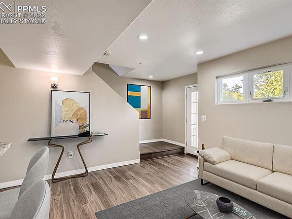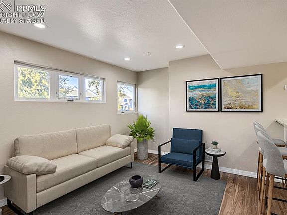 This move in ready home is conveniently located near Peterson AFB, and Fort Carson. New carpet throughout, an engineered wood main level deck, a lower covered concrete patio, central air conditioning, granite countertops, a primary suite with full bath and walk-in closet and two car garage- this home is move ready! This wonderfully designed townhome is in the heart of downtown Fountain and close to everything. Each of the three bathrooms have adjoining full bathrooms with tile; the master and secondary on the upper level and the third on the main. This is a great setup for roommates or guests. Brand new carpet throughout this wonderful floor plan. The kitchen has stylish cabinets, breakfast bar, pantry, and granite countertops. A engineered wood deck off the living room allows for outdoor entertaining. On the ground floor level, you have a bonus room that could be a family room, office, workout area or hobby room. Patio doors open out onto a covered concrete patio for even more outdoor living space. A two-car attached garage with opener is a bonus! Some photos use virtual staging to give a better idea of room size.