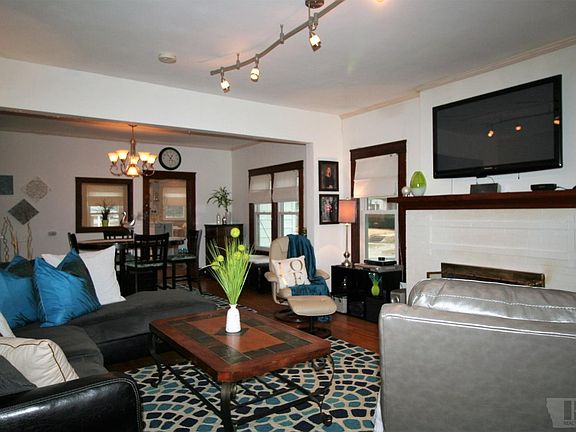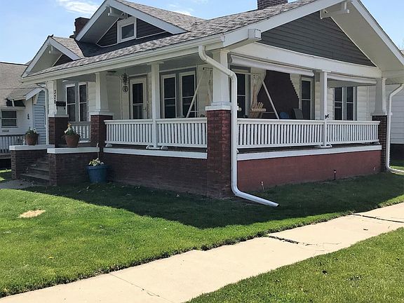 This cozy Craftsman home is located in a lovely neighborhood known as the Gold Coast area, with Bradley Hall one block away. Built in 1909, the craftsmanship & charm of this home stood the test of time with original oak hardwood floors, woodwork/trim, bathroom floor tile, brick fireplace/mantle which includes a gas insert, 9 ft ceilings, big wrap around front porch, & energy efficient windows that provide plenty of natural light & a nice breeze. Kitchen includes a gas oven with warmer drawer & 5th burner griddle/grill, new microwave, dishwasher, & garage disposal. You will enjoy the eat-in breakfast nook and flat screen TV. All bedrooms have nice closet space & 3rd bedroom has a built-in cabinet, which would be nice for linens. There is a washer/dryer hookup option also in the 3rd bedroom. Unfinished basement has lots of storage space. Low maintenance yard. A 2 car detached garage with breezeway. Within walking distance to the Historical square & Central Ward Elementary School.