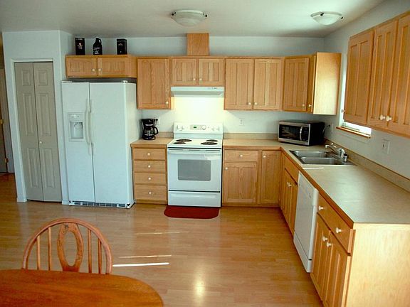 On 2.74 private acres! This well maintained 2300 sq ft ranch style duplex has 2BR & 2 Baths, great room,laminate floors, large kitchen, laundry, covered front deck, rear deck, garage, & separate gas & electric meters for each unit. Energy rated 5 Star.Excellent rental history. One unit will be available in June. Good commute location Teeland & Colony Schools.