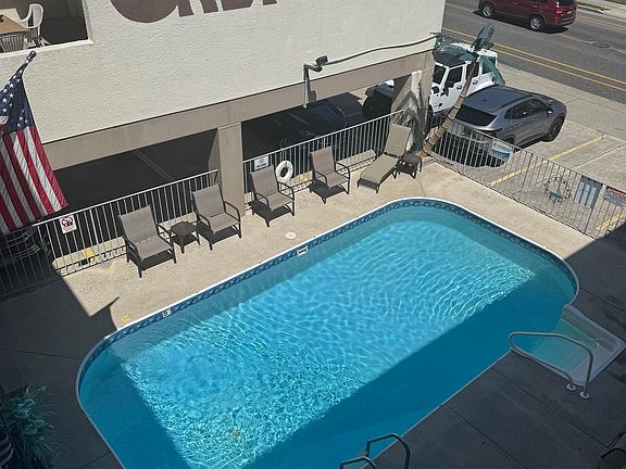 * BEACH BLOCK * POOL * PARKING * Are you searching for a good investment or a condo to call your beach home? Look no further - THIS ONE OFFERS AN IDEAL LOCATION! At Key Largo Condominiums you'll find a cute one bedroom, one bath unit, situated just a short distance (HALF A BLOCK) to the beach and boardwalk and within close proximity to tons of fun activities and restaurants! The corner unit has an outdoor space with chairs, where you can drink your morning coffee. The interior includes a living room, dining area, galley kitchen with full stove, refrigerator and a microwave, bedroom and a full bath with tub. Amenities include a beautiful pool, storage locker and assigned off street parking. Park your car in the designated parking spot and hit the beach and boardwalk, and this unit is close to restaurants, post office, shopping and more. This unit has an excellent rental history, with total of $17,400 gross rental income for 2025 through Travel Advantage Network. The Key Largo complex is nicely maintained, with newer exterior doors, windows and carriage lights in 2021 and the roof was replaced in 2019. The low HOA fee of $250 per month includes water, sewer, exterior maintenance, pool care, fire, liability and flood insurance. This is a seasonal building open from approximately the end of March to early November. Property is being sold furnished.
