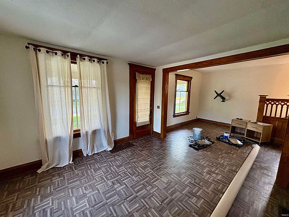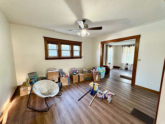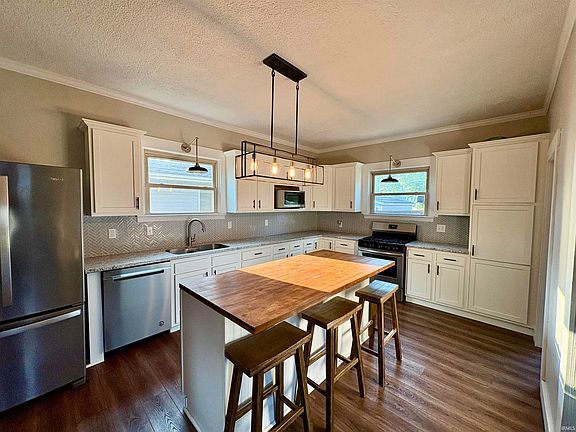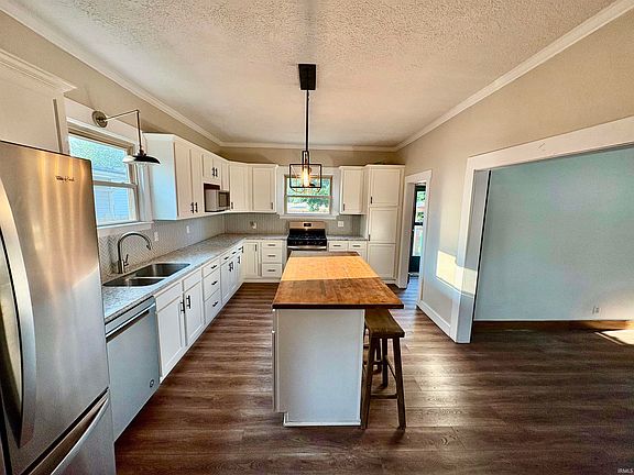 Not often do you find a home of this age and size to have three bathrooms. But at 320 E Wiley, you will find just that, as well as three bedrooms, a large living room, dining room, full bathroom, main floor laundry and a spacious kitchen that features a 3-4 seat island that has butcher block countertops. The rest of the kitchen features custom designed cabinets by Parlor City Cabinets, laminate countertops, stainless steel appliances and updated lighting. Upstairs features three bedrooms, two of which have built in shelving and desks. The primary suite has a walk-in shower that is tiled similarly to the additional second floor full bath. Spacious walk-up attic. Full dry basement. Fenced in backyard with a concrete patio, covered grill station, and a 15'x20' deck that just had new boards replaced. Within walking distance to multiple city parks, River Greenway Trail, downtown and Bluffton Schools.