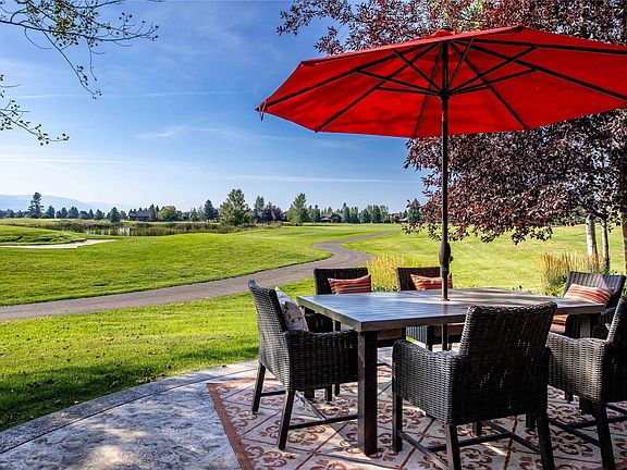 Exquisite Fairway Pines townhome located on the ninth green & fairway of the Osprey nine at Eagle Bend. Within easy walking distance to the clubhouse, restaurant, driving range, Eagle Bend Yacht Harbor, & the Montana Athletic Club. The south facing residence & covered patio capture views of the 1st & 9th holes overlooking a large pond to the mountains beyond. The large kitchen with beautiful cherry wood cabinetry, granite countertops, & vaulted ceiling features a large center island with gas cooktop & ample seating adjoins the intimate dining room with coffered ceilings & silhouette lighting. The comfortable living room includes a gas fireplace & a hand-crafted entertainment center opening to the covered patio. The primary suite includes a walk-in closet, soaking tub & shower with a separate guest suite on the main floor. A 2nd primary suite with golf course views & a 4th bedroom are separated by a library on the upper level. The laundry room adjoins the over-sized double garage. Fairway Pines HOA only amenity is a shared pavilion on Marina Way.