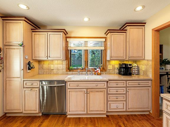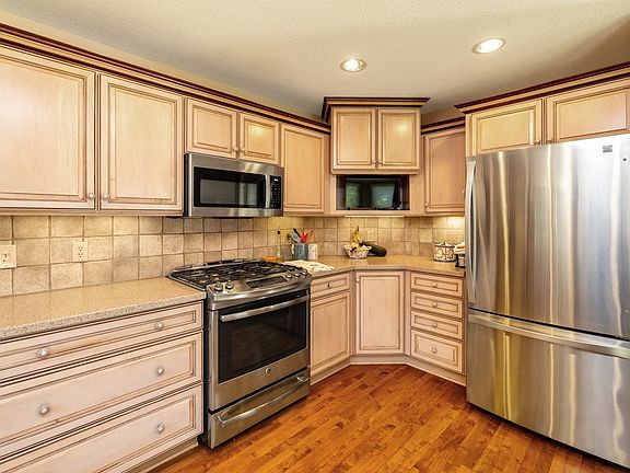 culinary essentials. The beautiful hardwood floors throughout the kitchen add warmth and character to