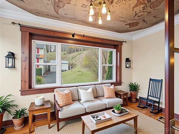 Step into the character and craftsmanship of this Victorian-era home, where timeless details and modern touches meet endless potential. Rich original woodwork, built-in cabinets by the fireplace, high ceilings, and hardwood floors set an elegant tone in the living room and adjoining sun porch while the open dining room features a unique ceiling design and the dining room's large picture window showcases sweeping hillside views, creating a beautiful backdrop to everyday living. The bright white kitchen and the spacious updated bathroom—with its impressive soaking tub—provide a solid foundation for further improvement. With three inviting bedrooms and a newer metal roof, the home offers both charm and important updates already in place. While full of character, this property still needs work, presenting a great opportunity for the next owner to restore and customize it to their own vision.