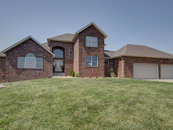 Ready to get some acreage outside of town? This might be the one for you! 3 acres 5 bd/3.5 bath/3 car/3899 sqft/2 story home with a full walkout basement. In Ozark with quick access to HWY 65. Your friends and family will admire the grand presence and tons of curb appeal that set this home apart from the others. The spacious entryway leads you into an open living area with tall ceilings & a fireplace. Wide hallways, vaulted ceilings & plenty of space are just some of the great features. Many beautiful windows let in lots of natural light. The walkout basement features a wet bar, media room, and storm shelter. Too many great features to list, come take a look!