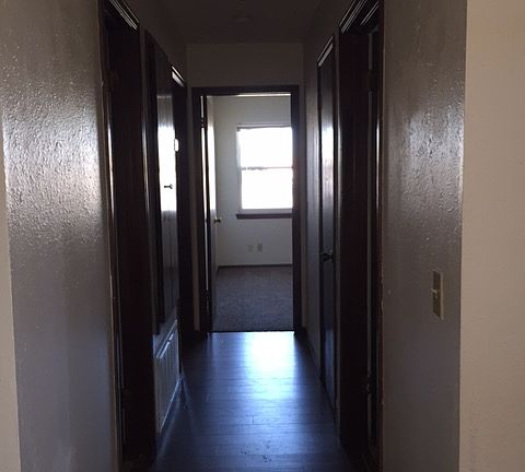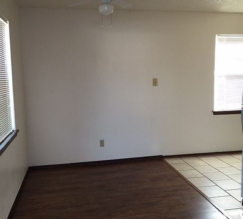 This is a spacious upstairs 2 bedroom, 1 bath unit with approximately 975 square feet and is located in a four plex setting. It is equipped with refrigerator, stove, dishwasher, garbage disposal, washer/dryer hookups and fireplace. Features include dining room area off of the kitchen, separate utility room, spacious closets in both bedrooms, ceiling fans and ceramic tile.
