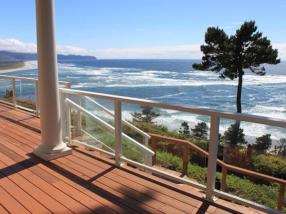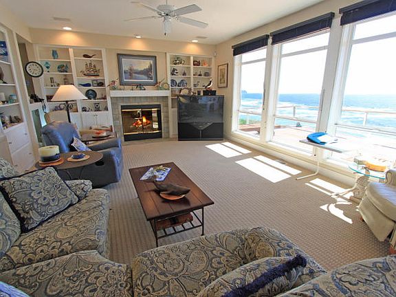 Spacious, comfortable, light & bright Capes home features wall-to-wall windows framing panoramic view of ocean, waves, beach, Netarts By & Cape Lookout. Timeless design & finishes will showcase even the most eclectic decor. Cooking Island faces view, elevator eases knees, two fireplaces (1 double) light up the night. Oceanfront but on bluff high above velocity flood zone/tsunami inundation zone. Relax on deck or take path down to beach