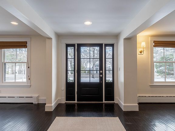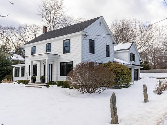 A classic white and black Foreside Road colonial. Extensively renovated and reinvigorated in 2014, this home exudes the charm of yesteryear with all the advantages of modern construction. New siding, windows, and roofing create a low maintenance and high performance thermal envelope. Native landscaping and hardscaping invites visitors to the newly built entry way. Dark hardwood floors extend throughout the home, into the bright white kitchen with a large marble island, Sub-Zero fridge, and highly functional pantry. The light filled-interior opens to a formal living room, a cozy dining room, and a captivating 4 season sunroom on the far end of the home, opening to the large and inviting backyard. Upstairs, the original colonial houses 4 generously sized bedrooms and a full bathroom. Over the newly reconstructed garage is a stunning primary suite, with a built-in daybed, two walk-in closets, and a designer bathroom complete with radiant heat. For extra space, an annex off the back of the garage was recently refinished, creating perfect work from home space, a home gym, or a bonus room. A recent and comprehensive basement waterproofing project promotes peace of mind and allows for exceptional storage space. On a corner lot of over half an acre, there is ample space for games activities in both front and back yards. Along one of Maine's most coveted stretches, you are a short distance to Town Landing, multiple shops and marinas, and a short drive to downtown Portland. This property promises the quality of life that makes Falmouth one of the state's most desired communities.