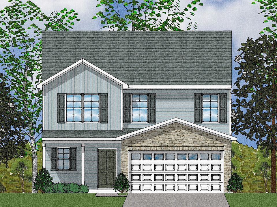 This outstanding five bedroom floor plan is on an amazing home site! Enjoy having a large primary suite on your main level! Almond Oak luxury vinyl plank flooring in open living areas downstairs. The kitchen features white cabinets, El Dorado granite countertops, stainless steel appliances, LED disc lights, pendant lights, a pantry, and lots of countertop prep space. The spacious great room has ideal wall space for furniture and an entertainment center, and also has a ceiling fan, and plenty of natural light. The downstairs primary suite features a vaulted ceiling, plush carpet, ceiling fan, double bowl vanity, white cabinets, quartz countertops, 5' walk-in shower, a linen closet, and a nice walk-in closet. The spacious secondary bedrooms upstairs all have walk-in closets! An open bonus room makes for a great home office, playroom, or audio/visual space. Enjoy the outdoors with your 12' x 10' covered porch in the back!