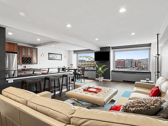 Come view this tastefully updated condominium in Pittsburghs iconic Gateway Towers. An open floorpan is perfect for entertaining while enjoying your river & stadium views. Ceramic flooring throughout the unit was installed for durability and echoes the warmth of hardwood. The kitchen remodel embraces modern finishes with timeless elegance. Stainless appliances and induction cooktop blend seamlessly in the design. Plenty of pantry storage available as well as space for laundry center should the new owner choose to add it. The bath has been updated in monochromatic color scheme & features Groh fixtures. The primary showcases the sculpted carpeting. A walk in closet will accommodate all of your clothes storage needs. There is also a "nook" which can easily accommodate your home office set up. Bench seating at all the windows are perfect for enjoying the views. Custom window shades adorn the large updated & operational picture windows. Doorman & concierge service. Your urban nest awaits!