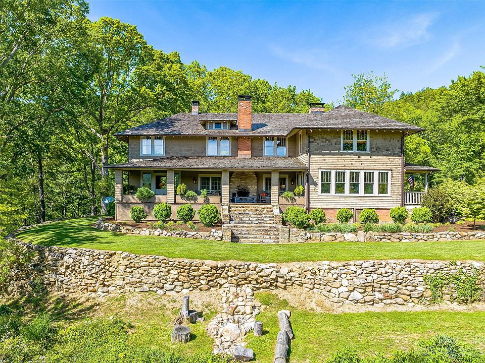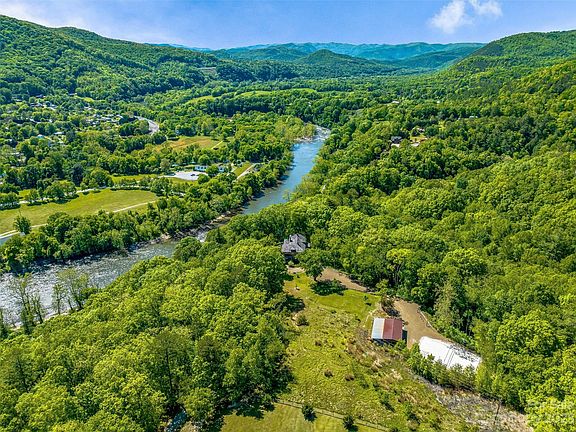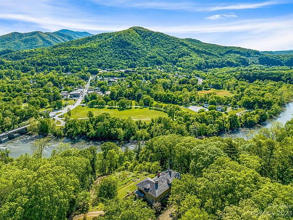 Stunning Private Estate on 9+ acres! 5 BR 4 BA Historic Arts and Crafts home/lodge overlooking the French Broad River and downtown Hot Springs! Recently restored down to every detail. Original floors, windows, doors and beams. Breathtaking mountain views, open floor plan, massive stone fireplaces- inside and out. Beamed ceilings, gorgeous chef's kitchen with ample room to entertain! The front porch is a fan favorite where you can spend hours with friends and family sipping, reading, or chatting. The volleyball court and play barn with ping pong, pool, and foosball borders the national forest and are a stone's throw to the Appalachian Trail and other trails nearby. Private riverfront launch for white water sports and less than a mile from downtown shops and Hot Springs Spa! Perfect primary home, rental property, or even wedding venue! Currently this home is operating as a 5 star reviewed short term rental home. There is nothing else like this home out there. This is truly one of a kind!