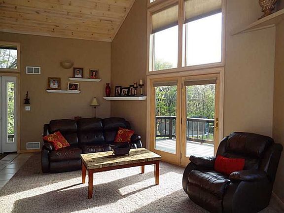 Country seclusion w/city conveniences. Feels like vacation everyday in this 3-4 BR, 3 Full BA Chalet like home. Enjoy 1.3 acres that feels like 5 w/ expansive grounds surrounded by woods and includes a 2 detached garage w/work area,storage and attached shed. Don't miss the mini house and fire pit in back. The GR includes a cozy family room, fully equipped kitchen and DR. W/O finished game room has optional 4th BR/den and full BA. Breathtaking views from inside and out. Unique home, property and opportunity to own!!