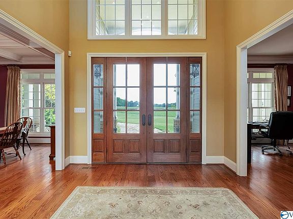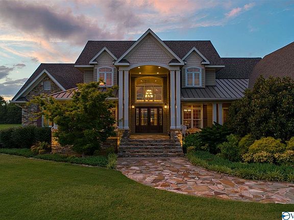 Incredible estate for sale in the Guntersville area on +/-15 acres. A custom Southern Living home with 4 bedrooms and 5 bathrooms. 2 gas & 1 masonry wood burning fireplace, library, extra large master suite with heated master bath floor, tiled shower & his/her closets, oak hardwood floors, 10' main walls, 2 natural gas Rinnai water heaters, granite counter tops, pantry, dining room, spacious bonus room, plenty of attic storage space, Hardie Board exterior, screened porch, stone deck/patio, 3 car garage, new roof, fully heated/cooled workshop area w/ half bath & a separate craft room, sprinkler system, security system, & so much more! Near Guntersville Lake, schools & hospital.