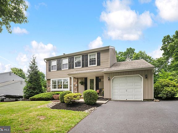 Here's the home you've been waiting for! A true gem in the beautiful Canterbury neighborhood of Montgomery Township. This 3 bedroom 1.5 bath Colonial has so much to offer. Enter into the front hall with updated wide plank hardwood flooring. The living room to the left has 3 large windows providing tons of natural light. A formal dining room with updated chandelier overlooks the beautiful gardens in the backyard. The recently renovated eat-in kitchen has tons of cabinets, gas cooking, stainless steel appliances, and a pantry! Step down into the family room, complete with luxury vinyl flooring, an electric fireplace to cozy up to in the winter months and access to the multi-level deck. Upstairs you will find 3 bedrooms and a full bath with a shower and bathtub. The primary bedroom has a walk in closet and dressing area, while bedroom 1 and 2 have plenty of closet space and tons of natural light. The unfinished basement offers endless possibilities for customization, whether you envision an additional family room, home gym, or extra storage space. One of the highlights of this home is the expansive deck out back, perfect for entertaining guests, enjoying a morning coffee, or simply relaxing in your private outdoor oasis. The large yard provides ample space for gardening, play, or potential expansion. This home has been lovingly maintained inside and out making this one you don't want to miss! The location is walkable to Spring Valley Park and all it has to offer...tennis courts, basketball courts, tot lot, walking trail, baseball and soccer fields. Close to routes 309, 463, 202, PA Turnpike, Several Septa R5 train stations, Wegmans, Target, Trader Joes and so much more!