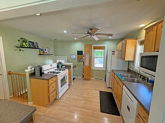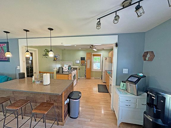 - Description: Kitchen Open to LR & dinette area, Breakfast bar w/3 bar stools & drop lights. Island w/2nd sink. Corian countertops. Maple Cabinets. All Appliances stay. Samsung Refrigerator new in 2024.