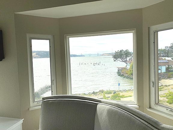Incredibly Beautiful and Rare Waterfront single family home in Benicia. When you enter this amazing home on the main (upper) floor, you walk into an open floor plan full of windows looking onto the Carquinez Strait. To the left you enter the fully outfitted modern kitchen, with turquoise infused granite counters, a large island, and top of the line Miele Bosch SubZero Thermador stainless steel appliances that all blend into the sophisticated cabinetry. The kitchen leads to a large upstairs deck that wraps around back side of the house, showcasing 180+ degree views. One large bedroom primary suite, along with a junior bedroom suite and full bath are all located on the main top floor, and 2 more bedroom suites fill the lower level. Each with water views and the largest with its own balcony. The house also boasts a 3 car garage, a large main level laundry room. It's on a very quiet and secluded court. Don't miss this coveted property.