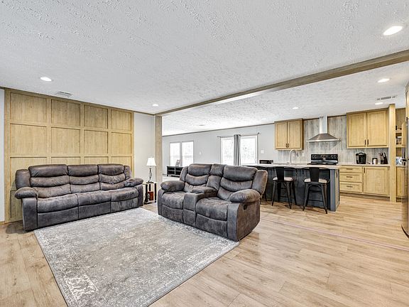 Country living at its best! It is so nice and quiet! No HOA! When you walk to the end of your driveway to get your mail you will see the beautiful horses across the street at your neighbors home. Plenty of room for your animals, boat, RV or trailer. This is a manufactured/mobile home with bricked in skirting. The home offers an open floor plan with gorgeous LVP flooring throughout and has a large primary bedroom and three secondary bedrooms. The kitchen is open and bright so that while you are cooking you can still converse with your family and guests. The seller put up blinds in every window that will convey.The back deck is HUGE and great for entertaining. Out back in the yard, the property offers a large fully fenced in yard with a 10 foot wide double gate so you can pull your boat or extra vehicles right behind the fence. The home is on a septic and well. Total acreage is right at 2 acres. Come check this property out now, it won't last long.