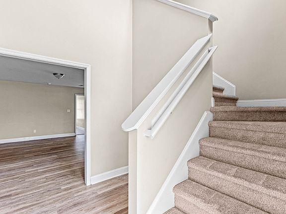 This 4-bedroom, 3-bath home offers a versatile layout with three bedrooms on the main floor and a private fourth bedroom with full bath upstairs. The primary suite features dual vanities, a soaking tub, separate shower, and two walk-in closets. The kitchen includes stainless steel appliances, a double-basin sink, and a breakfast bar that opens to the living area. Step outside to an open backyard with a concrete patio, perfect for outdoor dining or relaxation. Located in Falcon Bridge, this home blends comfort, style, and convenience.