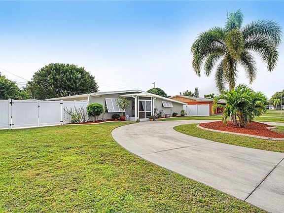 Updated mid-century home just minutes from downtown historic Venice and Beach. COZY A-frame offers many comforts of Florida living! Beautiful refinished Terrazzo floors add a quiet elegance to this dwelling. Home was re-plumbed in 2012, new a/c in 2006, new gutters just added to the roof which was replaced in 2005, and the kitchen/bathrooms have been remodeled. Front bedroom has its own bathroom with a trendy space-saving barn door. Bonus Room off the kitchen can be a den/family room/office/guest room/crafts room--whatever you need; & has sliding glass doors out to a large inviting patio. Large fenced yard, with a 6-person Hot Tub, canopied by a stately mahogany tree is made for entertaining. Complete privacy is yours with the 6' white PVC Fencing which has a life-time warranty--there are 2 gates--one wide enough to allow entry of a boat or RV which can be stored on the 17'x 40' concrete slab. Behind slab is a 8'x 12' Shed, complete with electricity! There is more storage along the other side of the house. The yard is large enough to allow home expansion if needed. The Bahama Storm Shutters provide shade and protection in inclement weather. The cement-floored screened front porch makes a friendly protected entry-way. Cement curbing around the gardens create a visually appealing view as you pull into the circular drive-way. Optional HOA of $125/year which allows use of community pool. You must see this home in person to appreciate all it has to offer. County records show Effective Age of Home as 1985.