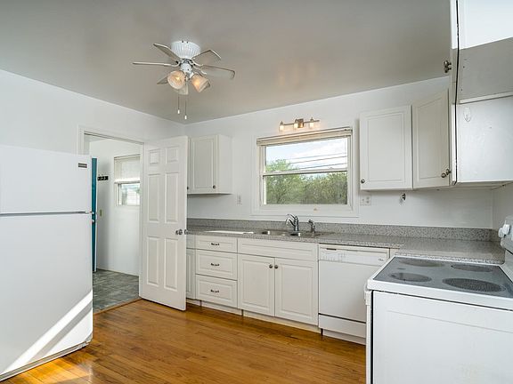 • Kitchen Cabinets/Counters: Formica Counter, White Cabinets