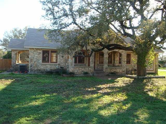 All the charm of the 1920s with updates under the shade of a wonderful oak tree. Stone exterior, updated kitchen and bath, wood and tile floors, fireplace in living room, formal dining plus a bonus area that would be nice for a computer nook. Porches front, side and back. Large backyard with privacy fence, detached metal 2-car garage. May be eligible for HUD's $100 Down Payment Program.