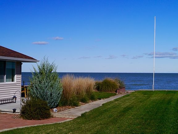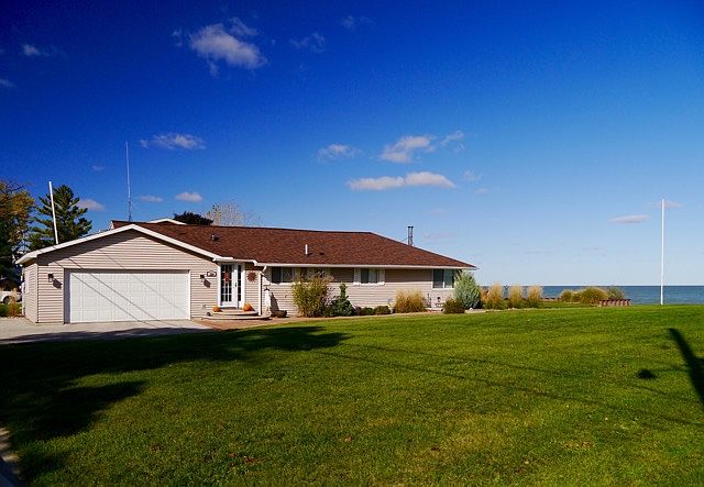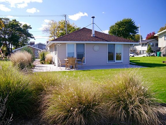 Excellent buy with outstanding view of the Bay. Desirable Killarney Beach location. Updated roof (2011), kitchen, bath, water heater (2013). Hi-eff furnace, vinyl windows, siding, concrete patio, brick walkway, large garage with parking area for boat or trailer. Also, another parking area that is nearby. Sandy beach and steel seawall and a cement apron. Living room with wood floor, woodburner, vaulted ceiling and patio doors to patio. Attractive landscaping.