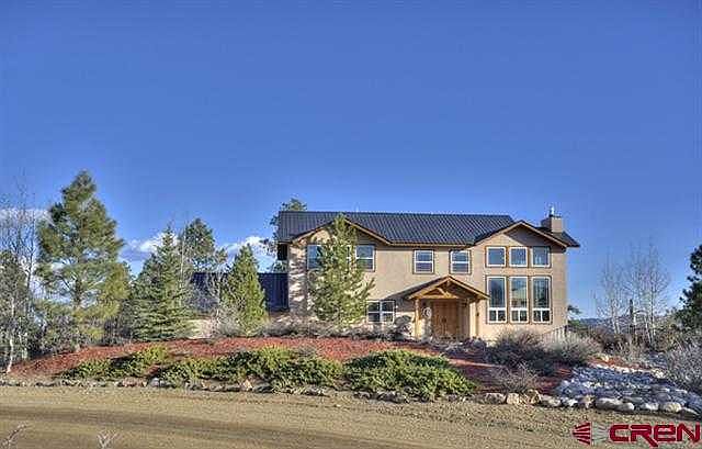 This home is IMMACULATE and shows like a model home. This four bedroom house boasts huge views not only of Durango, but also of the La Platas. Sitting in your living enjoying the fireplace, you look out huge picture windows and see views of the La Platas or enjoy views of town while sitting in your virtually new hot tub or deck. The landscaping has been done with drip irrigation and is very low maintenance and is very well maintained. There is extra storage runs all the way under the house and can be accessed in the garage as well as extra storage runs all the way across the hallway upstairs and is located in the office up above. There is not only breathtaking views of town and the La Platas, but also from the upstairs there are views of Lake Nighthorse which is slated to open in 2015 for water recreation, trails and hiking. This homes has four bedrooms (one on the main level and three upstairs) and two and a half baths. The laundry room is large and extremely functional with a doorway right into the garage. The separate dining room is elegant and is waiting for you to throw a dinner party. This home has barely been lived in and feels practically new. Do not miss this amazing deal in King Mountain Estates!