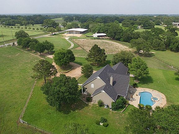 HAVE YOU BEEN LOOKING FOR A RANCH WITH A BIT OF EVERYTHING? Look no further. This 21.25-acre beauty in Bellville will take your breath away. Property boasts 1.5 stories, 4-bedrooms, 3 full baths, 2 half baths, 3944SF home with game room up, office, formal dining, master suite down, wet bar, covered back patio, beautiful inground pool, hot tub, large fishing pond with island, horse stable with 7 stalls, 10,000SF party/equiptment barn with RV overhangs on slab, gated entry, cross fencing, lighted arena, two entries with nice road frontage and more... WOW! EXTRA INTERIOR FEATURES: Hardwood Floors Formal Entry Master Suite Down And Adjoining Bath With Jacuzzi Tub, Separate Shower and Double Vanities Marble Wood-Burning Fireplace In Living Wet Bar By Back Patio With Granite Counters/Ice Maker/Wine Rack Large Office Off Entry Formal Dining Off Entry Granite Island Kitchen w/ Stainless Appliances Walk-In Pantry Huge Mud Room Off Kitchen Game Room and 3 Bedrooms Up Jack-N-Jill Bath Plus Additional Full Bath Up SPECIAL EXTERIOR FEATURES: HOUSE: EIFS & Stone Exterior Front/Back Covered Porches With Pillars Create Mediterranean Feel Pool/Raised Hot Tub With Travertine Accents 1-Car Garage/Workshop Attached to Port-A-Cache Carport LAND: Gated, Automatic Entry With Pole Fencing And Stone Pillars Cross Fencing And Pens Lighted Livestock Arena with Schute Working Pens Horse Stable Barn on Slab with 7 Stalls (4 run in) and Tack Room Huge Equipment/Party Barn on Slab with 4 Roll-Up Doors and RV/Equipment Overhangs on 3 Sides Party Barn Also Includes: Bathroom, Commercial Kitchen Sink, Fridge, Cleaning Station/Counter Huge Fishing Pond with Small Island Clusters Of Hardwood Trees Nice Road Frontage