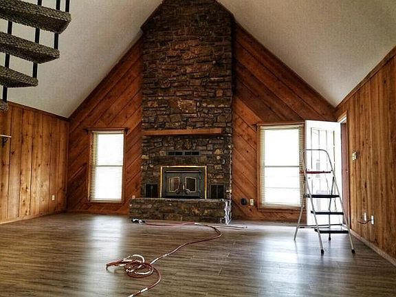 Lake Atkins is less than 1/2 mile away, and if that's not enough convenient enough, just walk out your back door and enjoy the privacy of the shared lake. Nestled with the private lake and paved county roads to the west and south, you have the feel of being miles out in the country, but in fact, you are 2 miles from highway 64 between Pottsville and Atkins. Recently renovated with new flooring, including tile in kitchen and bathrooms. Upstairs loft room perfect for office or 4th bedroom.