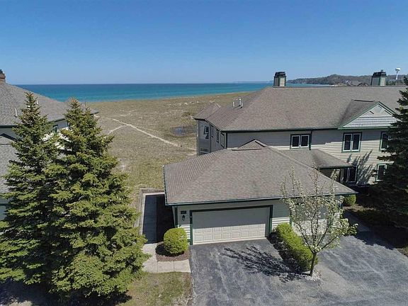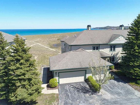 WALK RIGHT OUT to the wide, sandy beaches of LAKE MICHIGAN from this 2-BR, 2-BA, one-story, lower-level condo with an attached 1-car garage. Gas fireplace. Central air. Everything is on one floor! 165 easy strolling steps out your door and down the path to the beach. And about a 5-10 minute walk to the lighthouse. NO BLUFF AT ALL! Sunsets in the summer can be seen from your living rm, your deck, or your own bed! You can also enjoy the deer, geese and duck around Man Made Lake. This is what you've been looking for ... and more! Harbor Village offers indoor/outdoor pool and hot tubs, a fitness center and a marina. The vinyl floor was just installed; the furnace and A/C were new in 2018; water heater new in 2017. ALL the HOA fees and assessments are paid in full through Dec 31, 2020!!