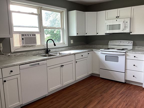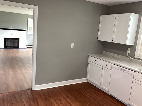 Large Living Room with Decorative Fireplace Eat-in Equipped Kitchen, New cabinets Stove, Refrigerator, Dishwasher, Microwave Vent-hood Easy-care Floors Throughout Carport Large backyard with storage shed, partly fenced but not closed. Full Partially Finished basement with lots of storage and Laundry Hookups. Oil heat for baseboard heaters. Tenant pays all utilities: water, sewer, trash removal, heating oil, does lawn care. Click on "Apply Now" to be considered for this lovely house!