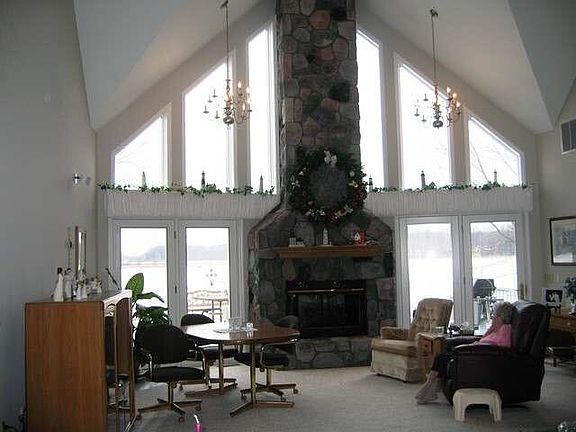 Well maintained home w/original owners. Thoughtfully planned & handicap equipped. Most rms. have a lake view. Main level master suite w/sep. tub & shower. Orr cabinetry throughout. 22' high LRceilings w/feature window & stone frplce. Lots of storage. Heated gar. w/utility sink, maint free deck. Pristine views, 95 ft.kfrt + Use of beach, volleyball, pavillion & land to the north. Home Warranty by Global Home USA.