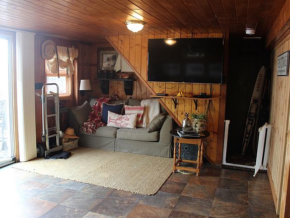 Charming Snow Lake Cottage! With 50 feet of lakefront and outstanding views from the home or spacious deck. Enjoy the panoramic view and the spectacular sunsets. 1200sqft with 2 bedrooms and possible den/sleeping areas as current sellers use plus two full baths. Laundry off kitchen. Ample storage in the kitchen and large breakfast bar, open concept to living room provides plenty of lake views Lot has a gradual slope with mature trees & walkout basement to the large multi-level deck to entertain & relax. Plenty of parking and a two car garage on a back lot. Shoreline has a concrete seawall and a a gradual sandy beach. Home has many modern updates and beautiful knotty pine in many areas. Snow Lake is a part of the Lake James Chain of 5 lakes! 3 ski lakes - James, Jimmerson and Snow - fishing lakes Big Otter & Little Otter. Over 2,000 acres of water to fish, swim, ski & explore.