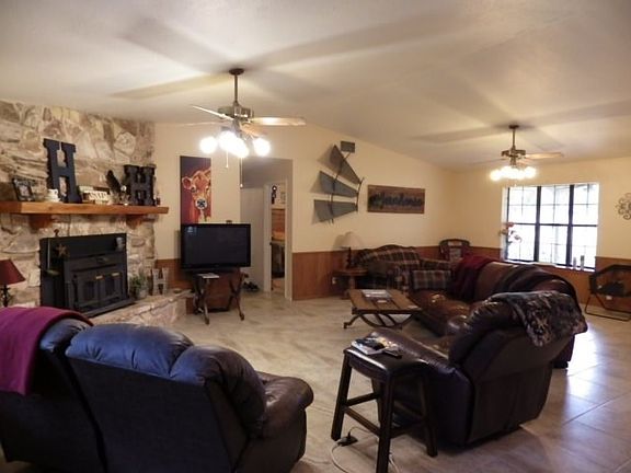 Sprawling 3BR/2.5B in quiet and coveted Leakey Springs, very near city of Leakey. Flat, usable and fenced/cross-fenced 7.239 acres with nice metal barn and outbuildings are currently enjoyed by several horses under the shade of large, plentiful Pecan trees. The beautiful approach to the home down the tree-covered, paved lane is nothing short of picturesque. Each of the three bedrooms has walk-in closets, with the large master having two walk-in closets in the spacious bathroom complete with a shower and a Jacuzzi tub. Attractive tile is throughout the home with an open kitchen/dining and living area complete with wood burning stove surrounded by a rock hearth. The master bedroom is on the opposite side of the living room for plenty of privacy, with a nice-sized office nearby. As a bonus, there is a large unfinished den with a wood burning fireplace and a half bath. A metal barn, several attractive outbuildings and an attached 2-car carport round out the package. This unique acreage and lovely home have access to the Leakey Springs and 8.5 acre private HOA waterfront park area where you will enjoy tall Cypress-lined banks and deep water for fishing and swimming. $450,000.