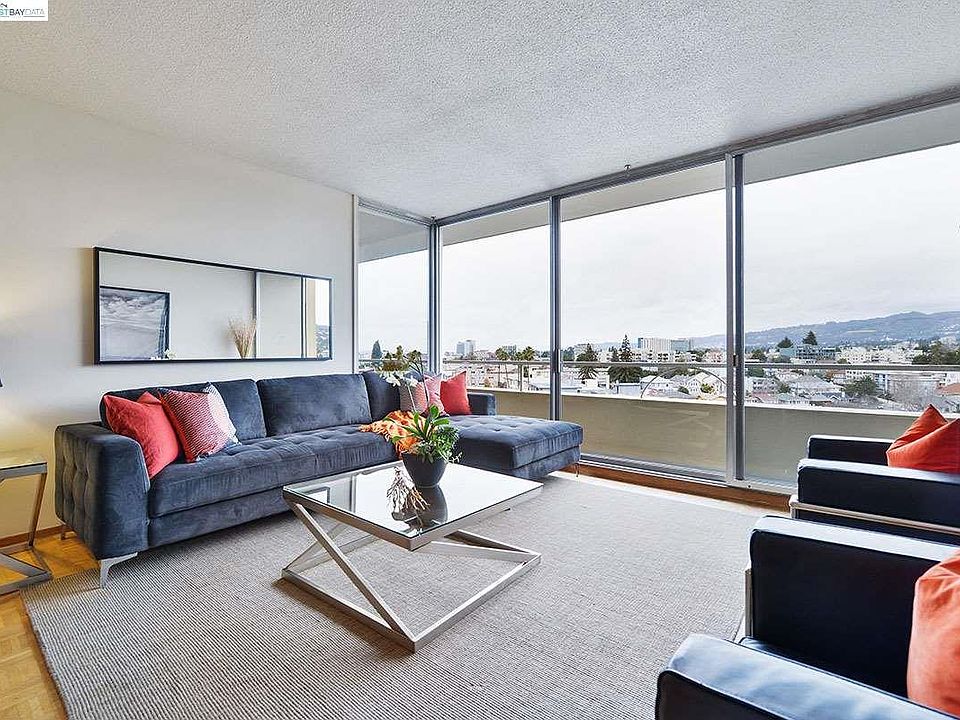 Spectacular Panoramic View 1 bed/1 bath condo located in desirable Adams Point Neighborhood Mid-Century Modern Style w/great Light & Views! Floor to ceiling windows. Updated kitchen & bathroom. Parquet wood floors. Designer Colors. Garage, Storage, Bike Room. Security Building.