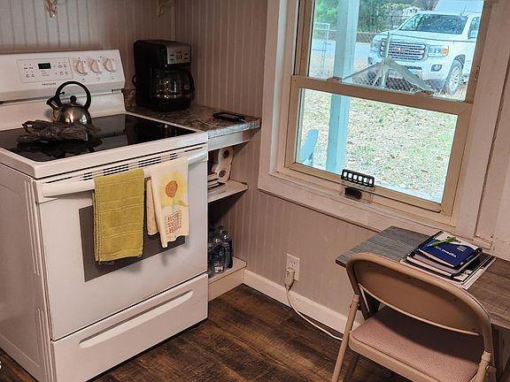 Quaint and adorable one bedroom one bath home. Nice, quiet neighborhood, huge corner lot. Home remodeled in 2022 with all new plumbing, new water heater, new appliances, new septic system and more. There is a detached laundry room with washer and dryer and plenty of storage. Fenced in yard, lot of shade trees, fire pit, front porch. The friendly neighborhood has a community center available with bingo nights and a park for the children or grandchildren to play. Agent, bring your buyers! We love to work with you!