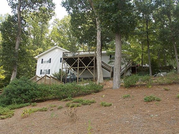 Jackson Lake water front home located on deeded wooded landscaped lot. It is one owner home that has taken lots of pride and care. This home is spotless!! It has 3 BR, 2 BA, a lovely beveled glass door entrance, sun room spacious enough for seating and dining, great room with a stone fireplace, basement for shop or storage, supersized deck overlooking the lake and paved driveway with turn around, also, paved to the dock area perfect for a golf cart or vehicle & floating dock. The home has many extras: a metal roof with 10 yrs remaining on warranty, no-clog gutter protector with a lifetime warranty, new well pump, and plumbing has all copper couplings and "Cable Lock System has been installed under foundation with a lifetime warranty. View is big & long.