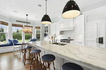 Pristine organic interior and fabulous outdoor entertainment areas are featured in this seven-bedroom plus den, seven and a half-bath home with all new linens, natural grass cloth rugs and a sleek decor. It has all five-star amenities. The chef's kitchen has a Wolf 6-burner range, two Thermador ovens, Sub-Zero refrigerator, two Fisher Paykel Dishwashers, and butler's pantry with wine cooler. There is a home office and two laundry areas. This home was published in Cottages and Gardens and Hampton's Showcase of Homes. Enjoy the outdoors from a wide wrap porch offering shade by day and outdoor fireplace for cozy nights. Discover the beauty hidden in the garden with it's landscape lighting. There is a sunny private backyard with 45 foot heated, gunite, salt water pool and spa where you can feel the ocean breezes. There is a two-car, detached garage. Great location to go take in the relaxation of the sea that is in sight from this home or the village shops and restaurants just a few blocks away.
