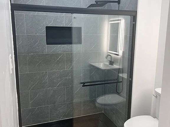 Totally rehabbed 1st floor unit in Fox Chase. Living Room with new flooring, high ceilings, antique ''pocket doors" lead into nice sized Bedroom; Ultra-modern full Bathroom w/ large walk-in stall shower; modern Kitchen features new appliances, new granite countertops; 2nd Bedroom, exit to rear full fenced yard. This features large rear yard, gazebo and fire pit. Lower level ( basement) exit to yard, features the 3rd Bedroom, modern full bathroom. Located few blocks from Temple Un Hospital ( Jeanes Hospital), "Joseph's Pizza" Restaurant. Minutes from breweries/restaurants in Rockledge area (Iron Hill, Gaul Malt house etc), Burholme Park and driving range. New washer, dryer & refrigerator included.